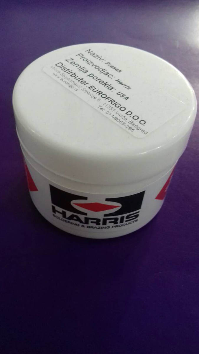 Harris prašak za zavarivanje. Koristi se kod tvrdog zavarivanja zbog boljeg spajanja, takođe sprečava pojavu poroznih rupa.