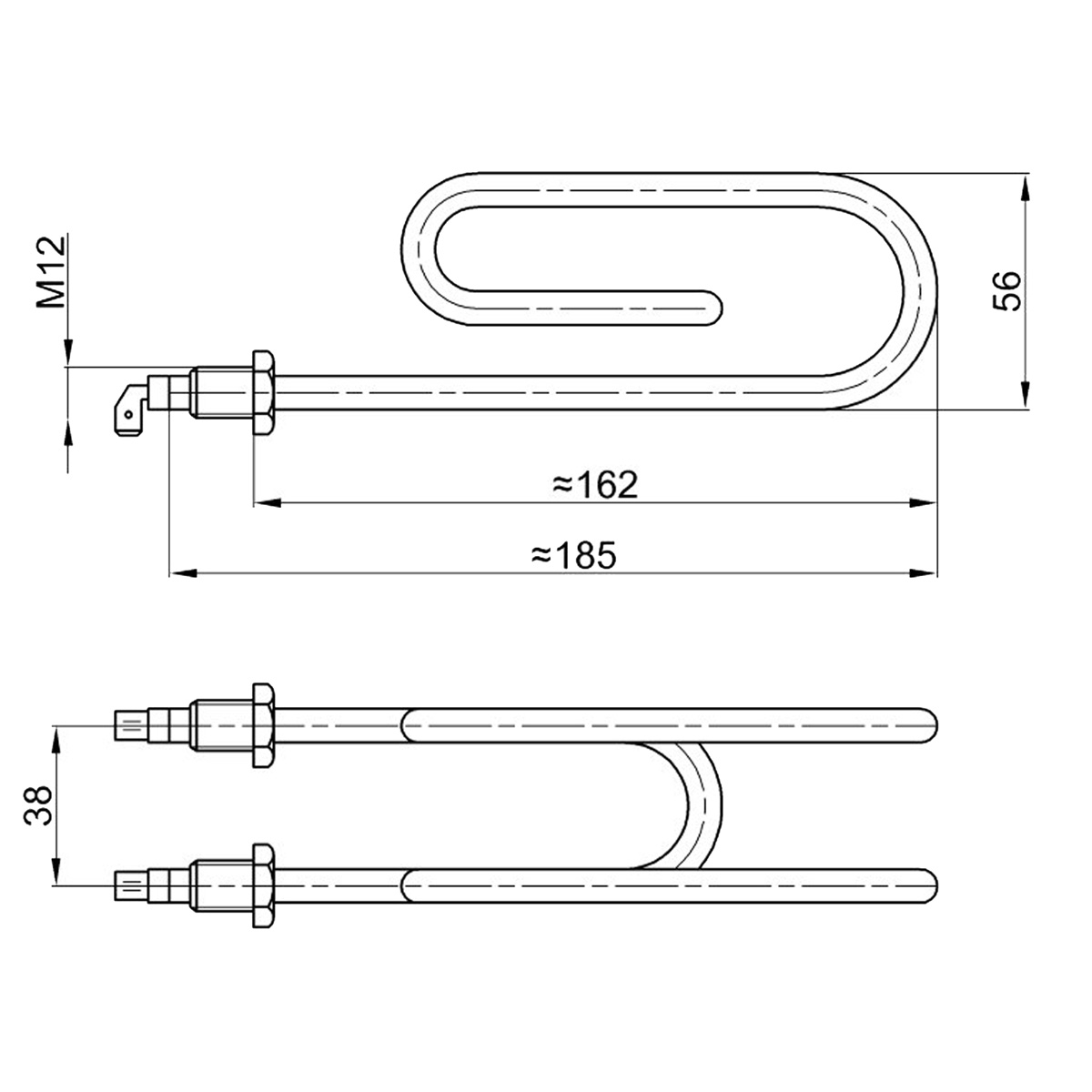 GREJAČ BOJLERA 2000w "M" TERMORAD BEZ PRIRUBNICE fi8.1mm M12 DUŽINA 190mm BAKARNI